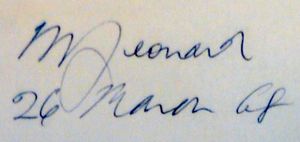 Revision as of 05:57, 1 January 2015 by Martinwguy (talk | contribs) (Created page with "{{Thumb|M. Leonard's signature}} At Kaleidophon, Delia created an electronic soundtrack for Mr. M. Leonard's exhibit The Coloured Wall at an Association of Electrical...")