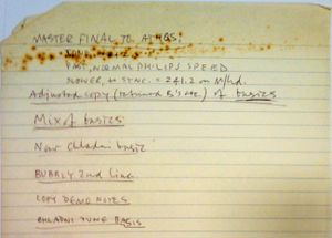 is Delia's notes: "Master final to Athos" for