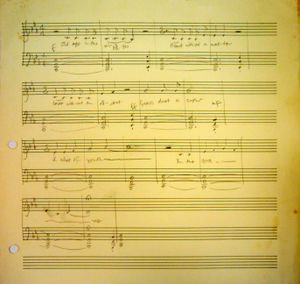 The lyrics on the manuscript read: