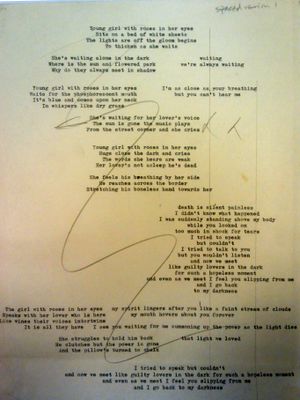 Jump to navigationJump to searchDD164945 is a typewritten draft "spaced version 1" of the lyrics for The Visitation.