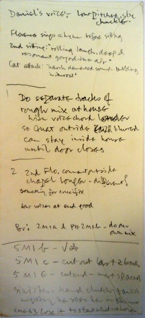 is a sheet of Delia's handwritten notes for