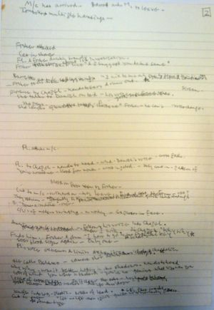 is a sheet of Delia's handwritten notes for