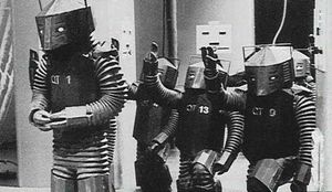 I did the music for the whole programme. It was probably in the mid '60s. [...] I never watched the stuff. I had a script, that's all. The actors, I got them to chant. The words they were singing were, "Praise to the master, his wisdom and his [reason]" [...] I turned it backwards first, then chose the best bits that sounded good backwards and would fit into a rhythm, and then speed-changed the voices. Then I used just this one bar repeated which had [previously] been rejected from a science and health program for being too lascivious for the schoolchildren. It was like a science program... it was supposed to be about sex, but under another name. And then the producer had the nerve to turn down my music, saying it was too lascivious. It was just twangy things with electronic pick-ups, and I just used a single note and then did little glissandos on it and pitched it and treated it. But the 'Ooh-ooh-ooh' isn't me... that's wobbulator, pure wobbulator. That's a piece of test equipment that does wave sweeps.[5]